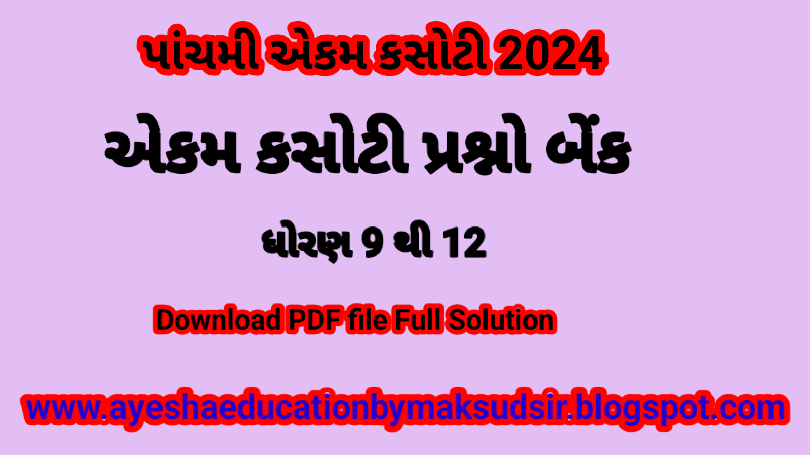 પ્રિય વિદ્યાર્થીઓ, જેમ તમે જાણતા જ હશો, ગુજરાત બોર્ડ દ્વારા દર મહિને ધોરણ 3 થી ધોરણ 12 સુધી સામયિક પરીક્ષણો લેવામાં આવે છે, જેથી વિદ્યાર્થીઓના અભ્યાસનું સારી રીતે મૂલ્યાંકન કરી શકાય અને તેમનો અભ્યાસ વધુ સારી રીતે કરી શકાય. એકમ કસોટી પેપર સોલ્યુશન આયેશા એજ્યુકેશન દ્વારા કરવામાં આવે છે, અને એકમ કસોટી પેપર 2024 તમામ વિદ્યાર્થીઓ માટે ફરજિયાત છે, જેના માટે સમીક્ષા સારી રીતે થઈ શકે છે, કોઈ પણ વિદ્યાર્થીએ આ પરીક્ષા અને આ પેપર પરીક્ષણ માટે છોડવું પડતું નથી. આ પેપર બોર્ડ દ્વારા તૈયાર કરવામાં આવે છે અને આ પેપર જિલ્લા શિક્ષણાધિકારીના ઈમેલ આઈડી પર પાસવર્ડ નાખીને મોકલવામાં આવે છે, જેથી આ પેપરની ગોપનીયતા જળવાઈ રહે.